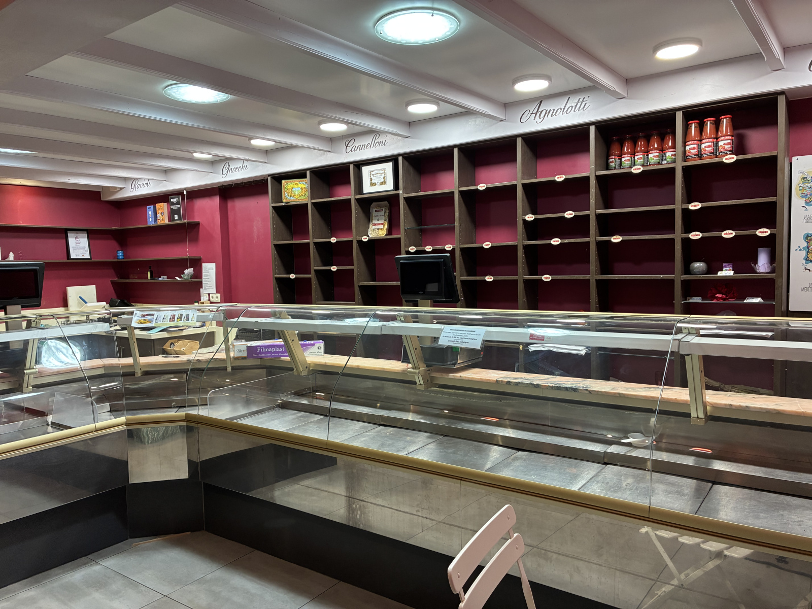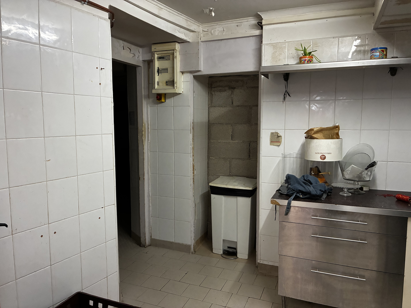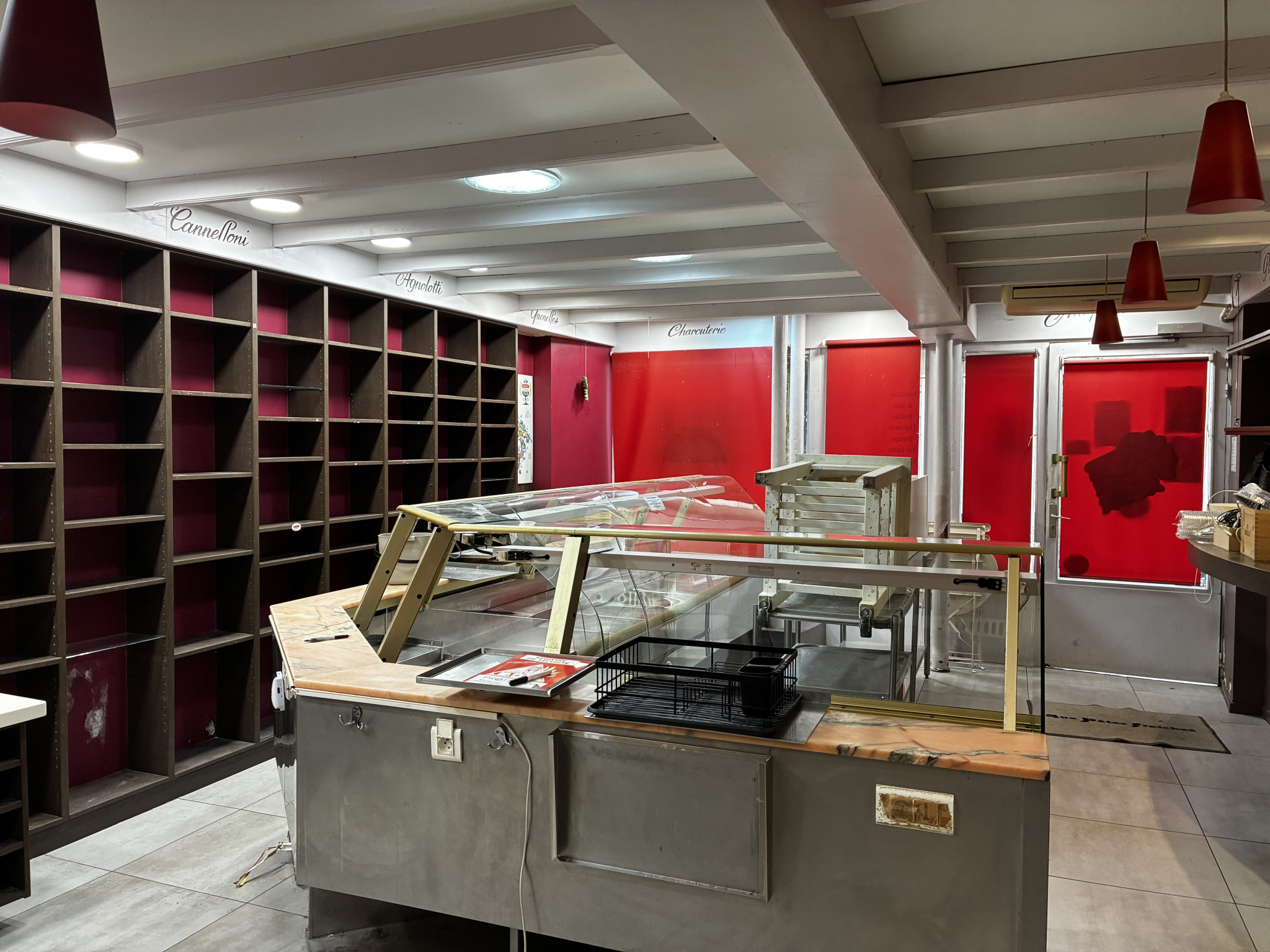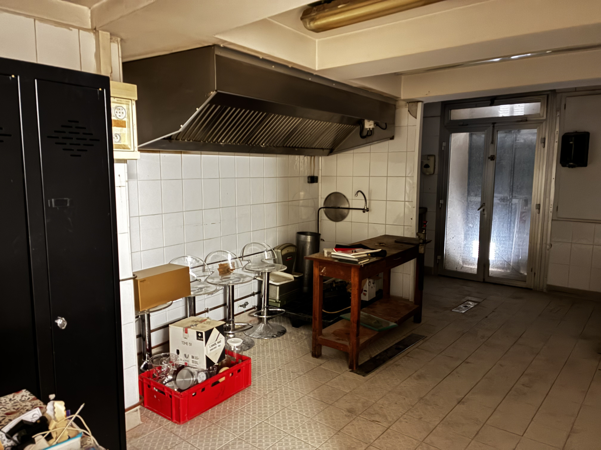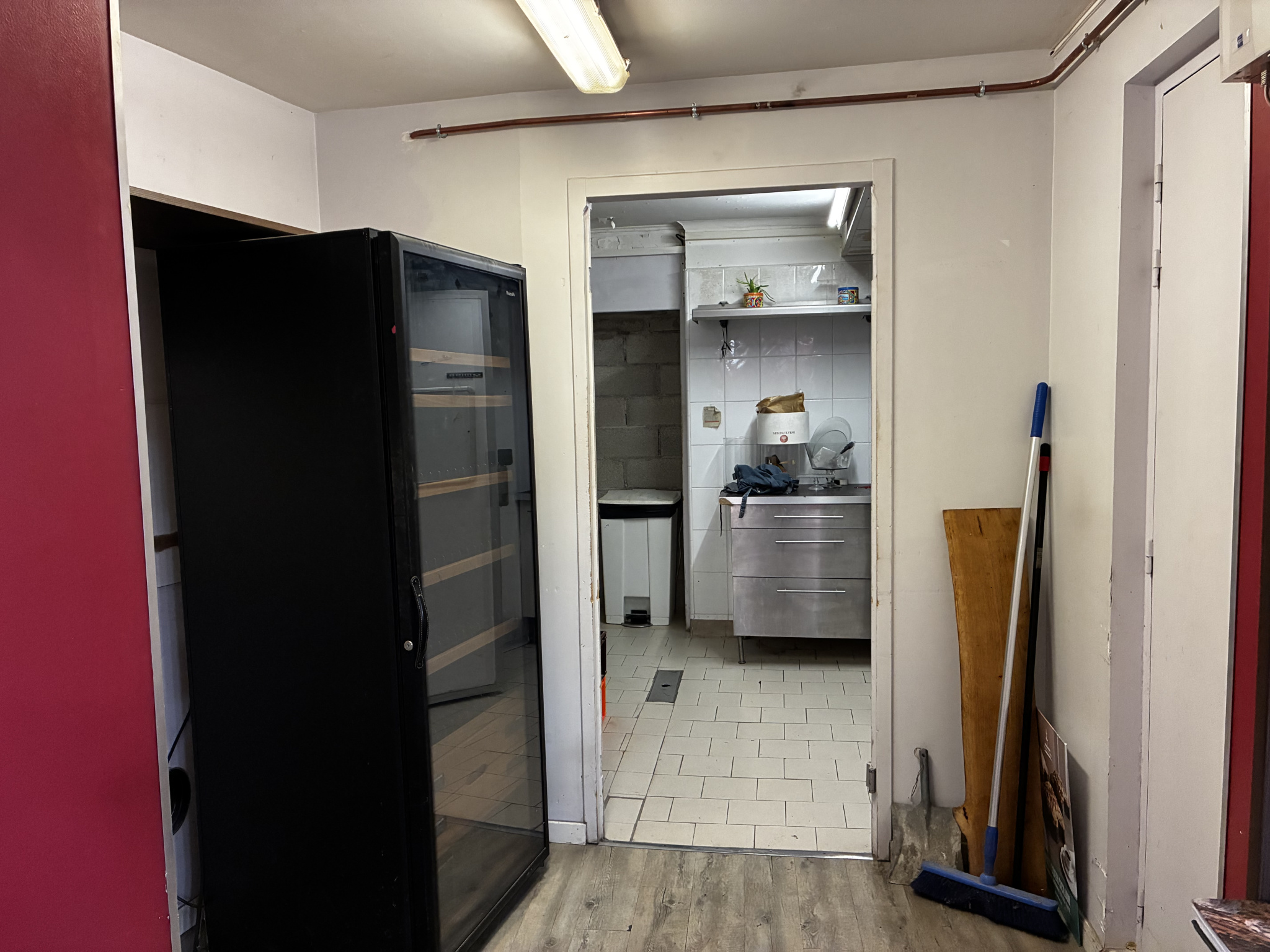 Ce local se compose d'un espace clientèle desservant une cuisine en trois parties Un place-plat, une chambre froide ainsi que le coin préparation. Il dispose d'un vestiaire avec un WC. Un WC indépendant. Au sous-sol , une cave de 90 m² environ.