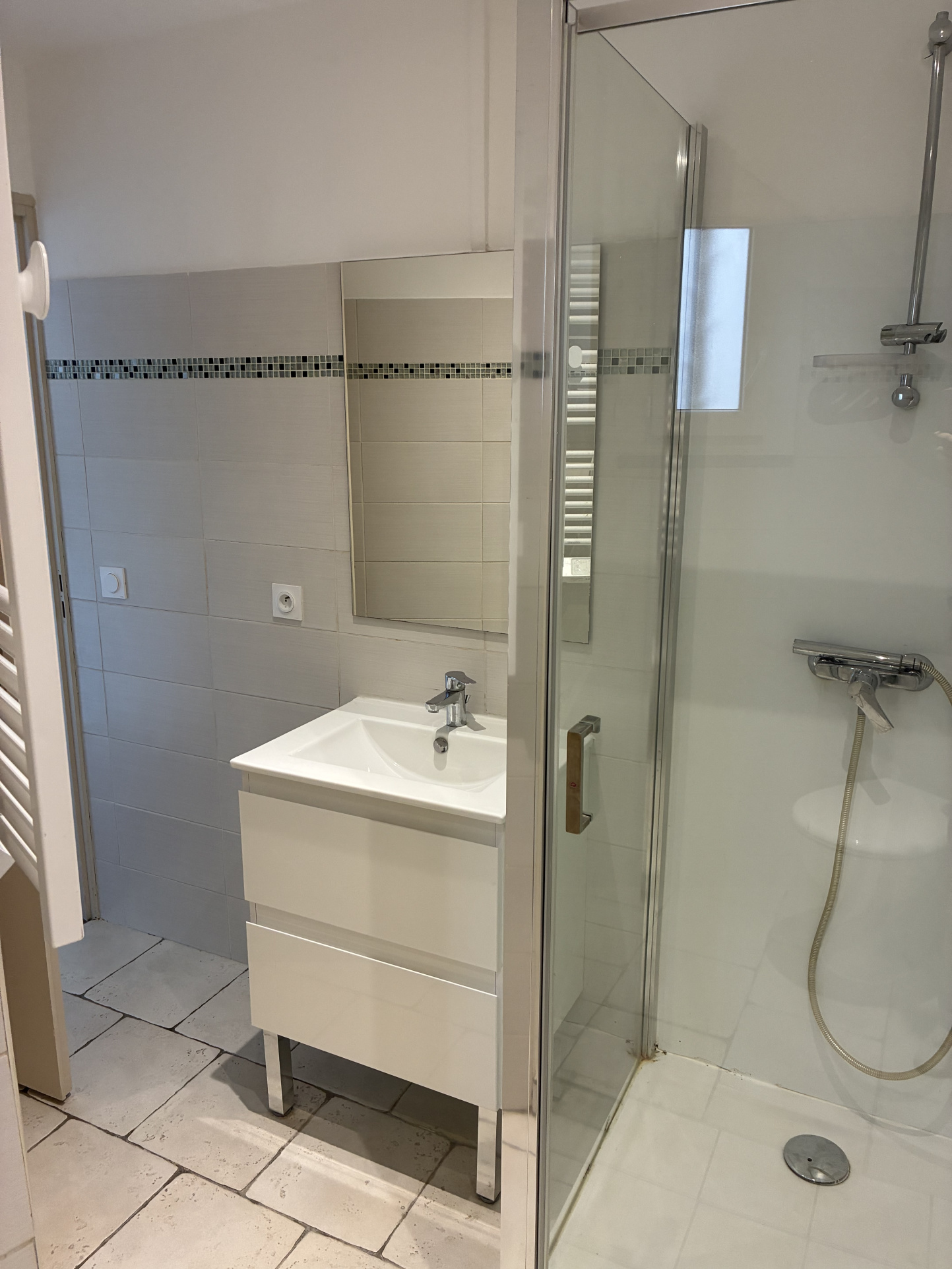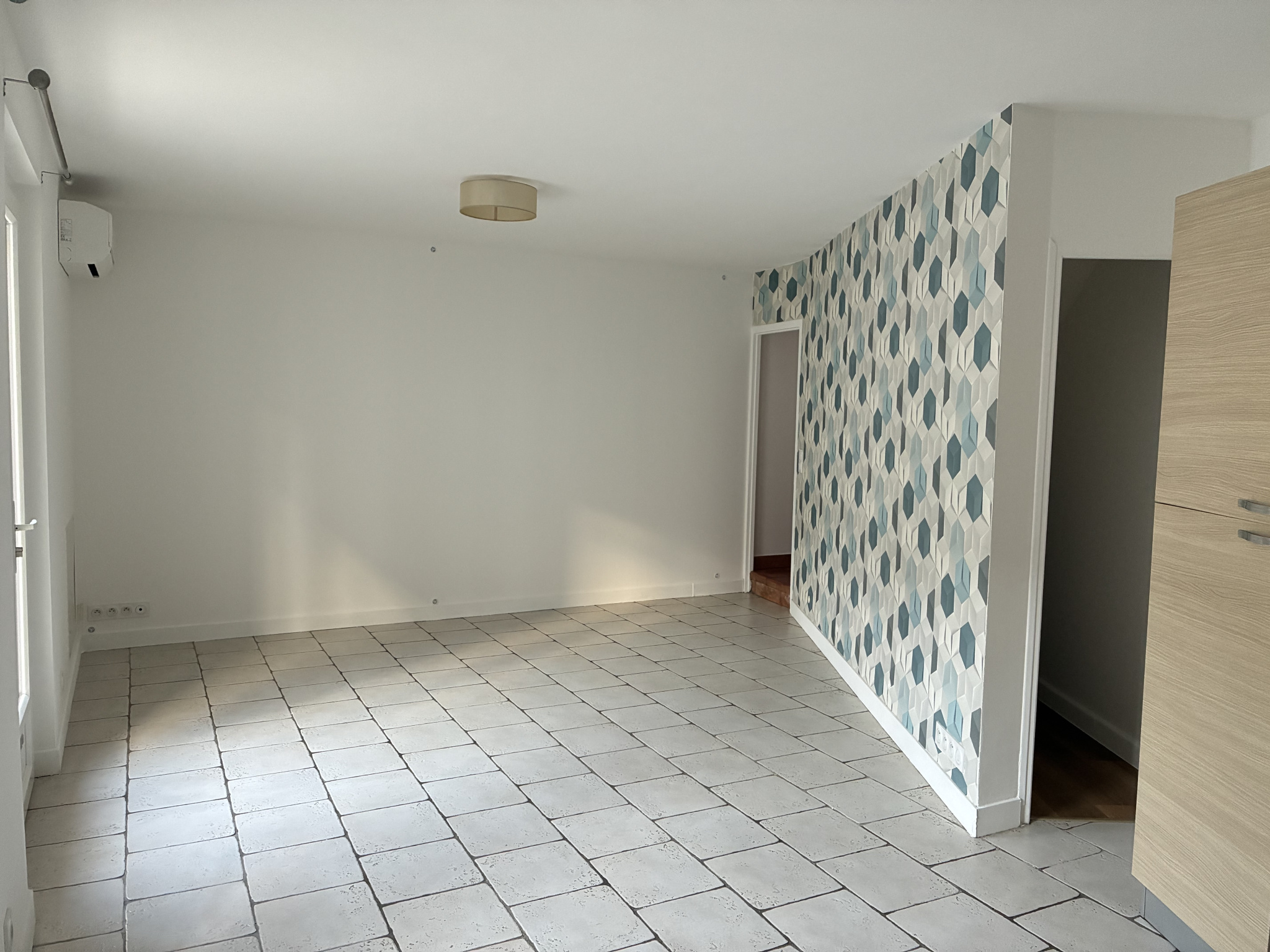 En rez-de-chaussée, elle se compose d'une pièce de vie lumineuse climatisée et ouverte sur une cuisine semi équipée ( plaque, four, hotte), desservant un cellier.
